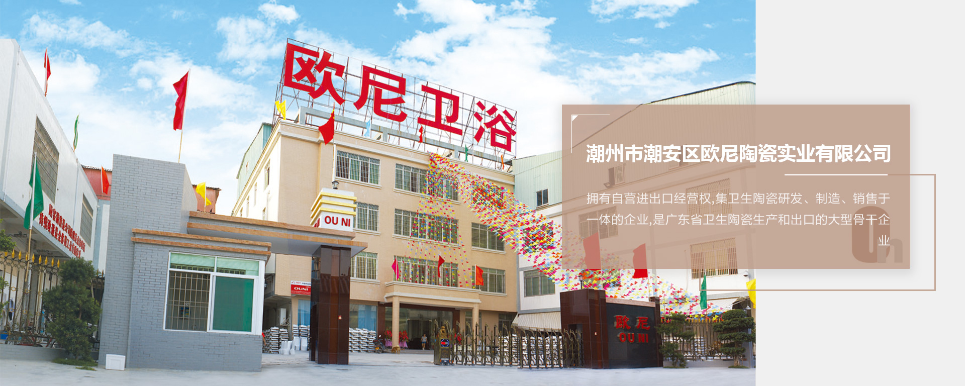 歐尼公司于1991年9月3日成立,坐落于廣東省潮安區(qū)古巷鎮(zhèn),是一家擁有自營(yíng)進(jìn)出口經(jīng)營(yíng)權(quán),集衛(wèi)生陶瓷研發(fā)、制造、銷(xiāo)售于一體的企業(yè),是廣東省衛(wèi)生陶瓷生產(chǎn)和出口的大型骨干企業(yè)。
